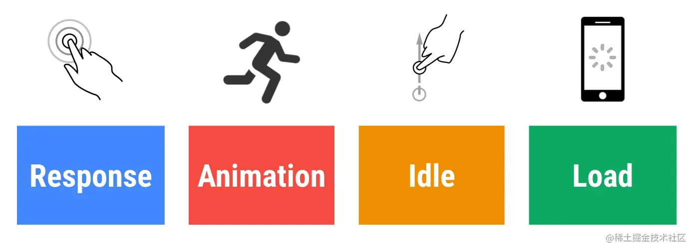 - 响应:应该尽可能快速的响应用户,应该在 100ms 或者 100ms 以内响应用户输入。