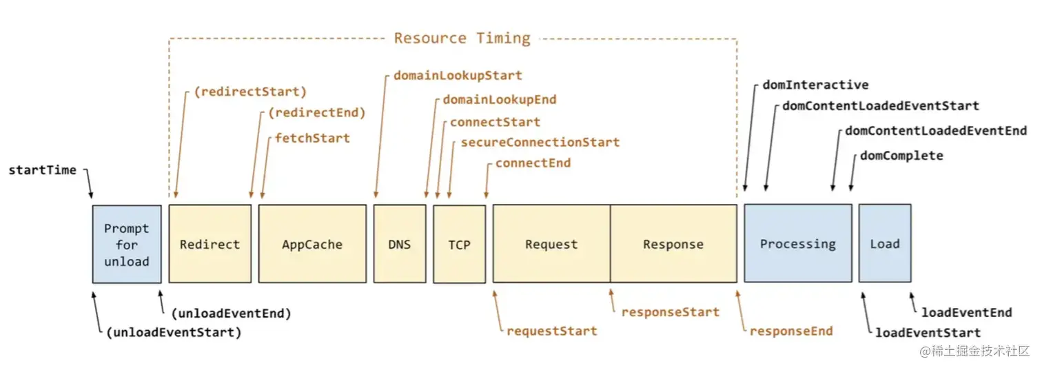 });下面按照各个时间节点的顺序一一做一下说明,参考 PerformanceTiming - Web API 接口参考 | MDN (mozilla.org):