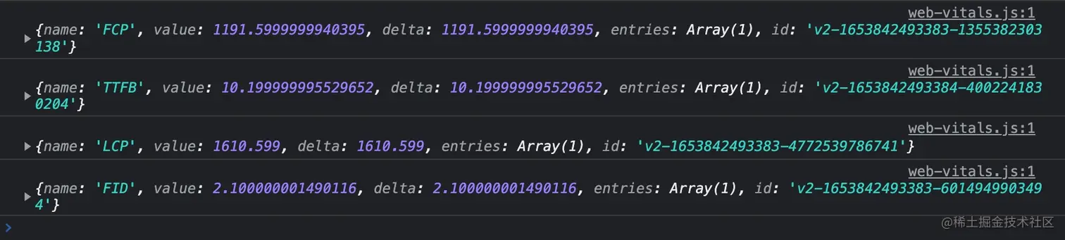 更多用法参见 GoogleChrome/web-vitals: Essential metrics for a healthy site. (github.com)